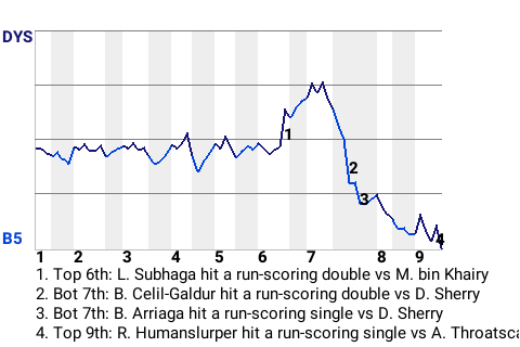 f - V. Danjuma pinch hit for I. Fingertorturer in the 5th