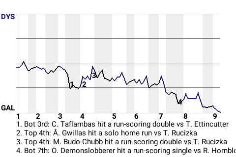 h - B. Spleengobber pinch hit for D. Ramblebucket in the 7th