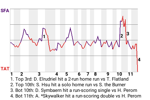 b - K. of the Lake pinch hit for A. *Skywalker in the 5th