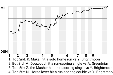 Dablag Humanslurper, who is tied for 10th in the SC in runs scored with 65, chipped in a 2-run home run for Rivendell in the top of the first. For the game, the left fielder had 2 hits in 5 at-bats with 1 home run, 1 single, 2 runs scored, and 3 runs batted in.