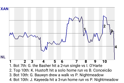 b - J. Nosejuggler pinch hit for Y. Brightmoon in the 4th