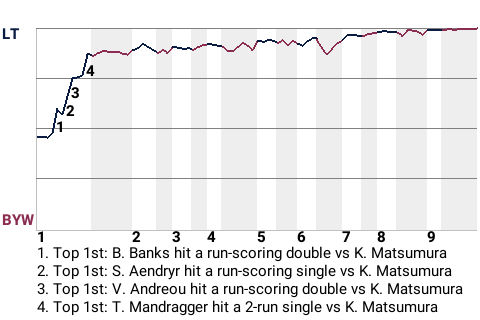 (15, 4th Inning off H. Sandybanks, 0 on, 0 outs)