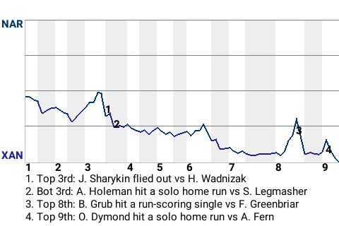In a tight contest between the Xanth Centaurs and the Forgotten Realms Kobolds, Gurg Toemasher was the determining factor. The Xanth left-hander sparkled in his team's 3-2 win. With the victory, the Centaurs upped their record to 65-61.